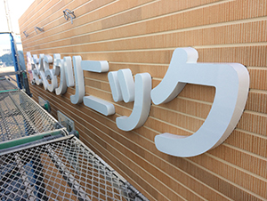 社名や店名を立体的な文字やマークにして壁面などに取付けます。素材もステンレス等の金属、ウレタンやアクリル等