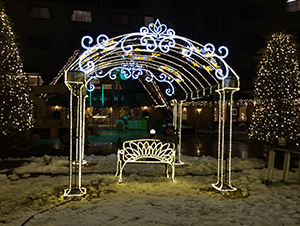 このような場所では人が多く集まってきますので熱を出さないLEDイルミネーションは安全と演出の両立ができるので活用のし甲斐があります。