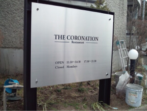 薄い金属板に文字やイラストを彫りこんで制作する看板です。通常の看板より腐食や退色に強く、金属でありながら